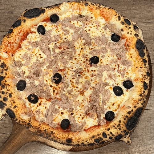 Base tomate, mozzarella, chèvre, raclette, bleu.